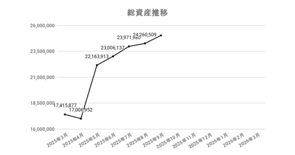 2025年9月末時点の総資産は、25,029,201円となりました。