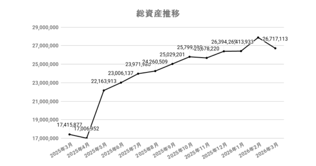 2026年3月末時点の総資産は、26,717,113円となりました。